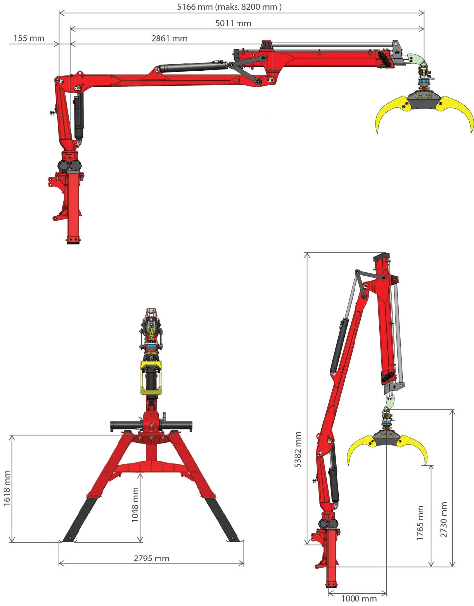 Kran mit Untergestell, Steuerung, Greifer und Rotator GO-022