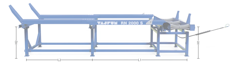 Der Längs- und Querförderer RN 1500 F ist eine effektive Ergänzung zum Tajfun Sägespalter. Er macht das Aufladen von Stämmen auf den Sägespalter einfacher und schneller und erhöht damit die Kapazität der Maschine selbst. Für den Betrieb verwendet er das Hydrauliksystem vom RCA, während die Steuerung durch die vorhandene Steuerung an der Maschine bedient wird. Die komplette Anlage kann von einer Person kontrolliert werden. Der Längs- und Querförderer RN 1500 F ist stabil und nur für die Montage auf einen Anhänger geeignet.