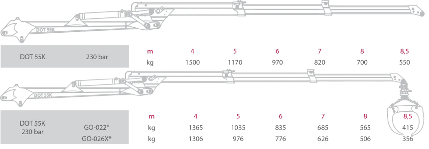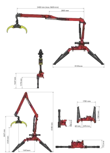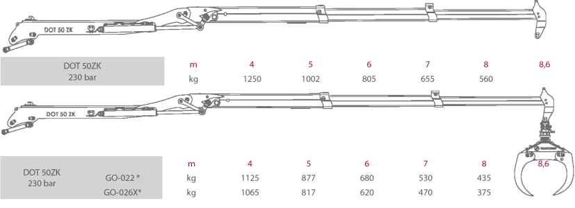 Dvigalo s podnožjem, upravljanjem, grabežem GO-022 in rotatorjem