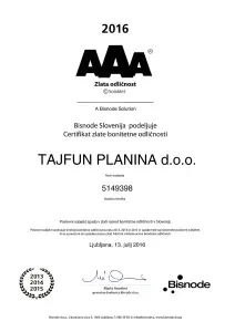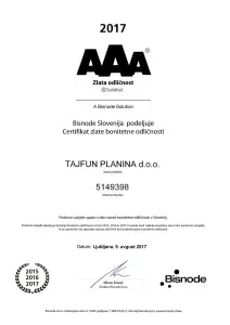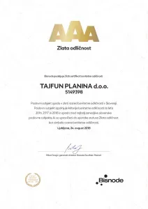 TAJFUN PONOVNO MED DOBITNIKI PLATINASTE BONITETNE ODLIČNOSTI
