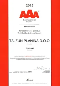 V podjetju Tajfun Planina d.o.o. imamo vzpostavljen in ustrezno vzdrževan sistem vodenja, ki izpolnjuje zahtevam standarda ISO 9001:2015